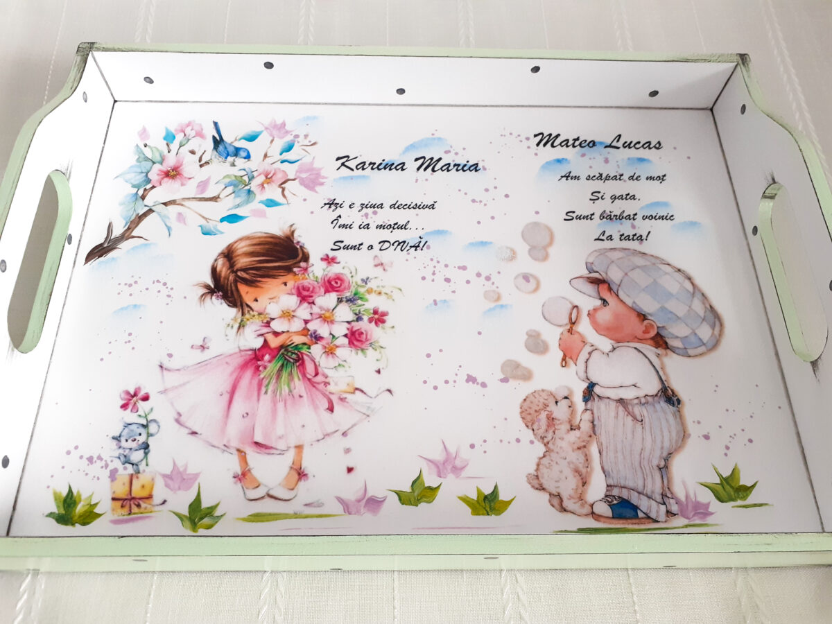 Personalizarea transformă tăvița într-un obiect cu valoare sentimentală, nu doar într-un accesoriu de moment.