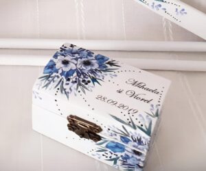 Respectă rolul fiecărui obiect: cutia de verighete pentru verighete, cutia de dar pentru cadouri bănești.