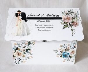 Cutia de dar este destinată colectării baniilor de la invitați în timpul nunții.
