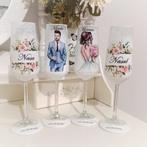 Paharele de nuntă sunt folosite de miri și nași la masa de nuntă. Ele simbolizează momentele speciale și completează eleganța ceremonială.