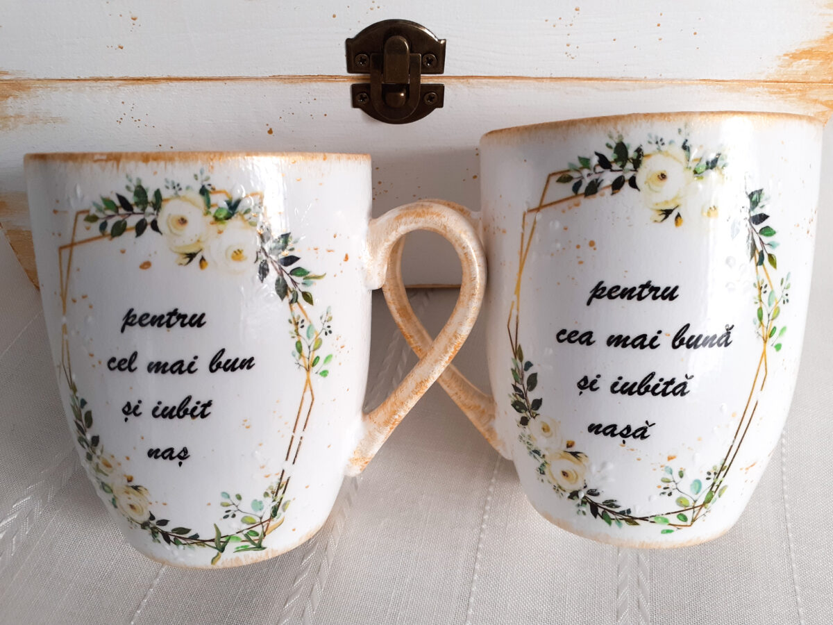 Cană decorată, creată pentru a adăuga un plus de farmec și personalitate cadourilor oferite. Ideală pentru a fi apreciată de cei dragi și integrată în rutina zilnică.