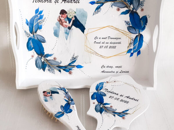 Tăviță pentru gătirea miresei, realizată cu atenție la detalii, perfectă pentru a marca începutul zilei de nuntă. Setul completează decorul și contribuie la atmosfera festivă. Un accesoriu care poate fi păstrat ca amintire de suflet.