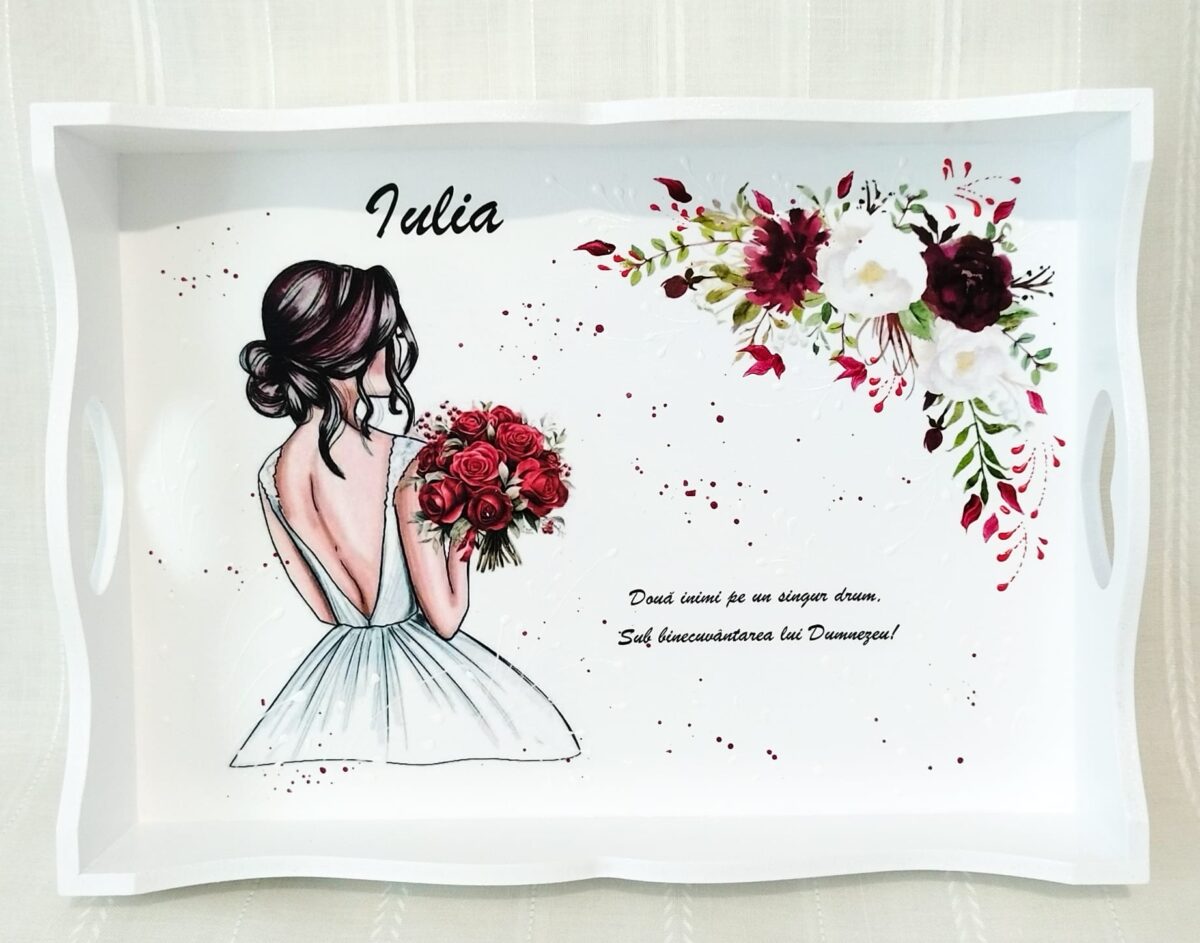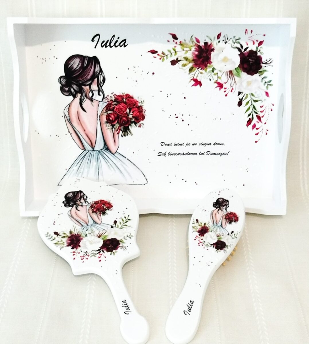 Fii primul care scrie o părere despre “Tavita/set de mireasa personalizat cu buchet rosu”