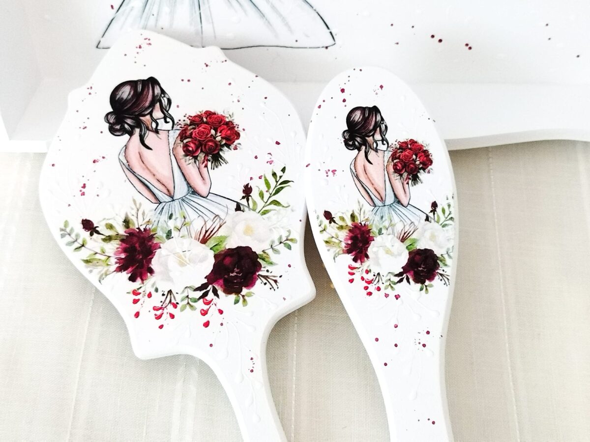 Un produs personalizat, elegant și distinctiv, creat special pentru a adăuga un plus de rafinament în ziua cea mare a nuntii. Acest set este realizat cu atenție la detalii și cu o grijă aparte pentru design, oferind o notă personalizată prin gravarea numelui sau al unui text de suflet. O alegere cu adevărat specială, care va completa cu eleganță și originalitate momentul unic al nunții. Tehnica de realizare este pictură basic si transfer de imagine.